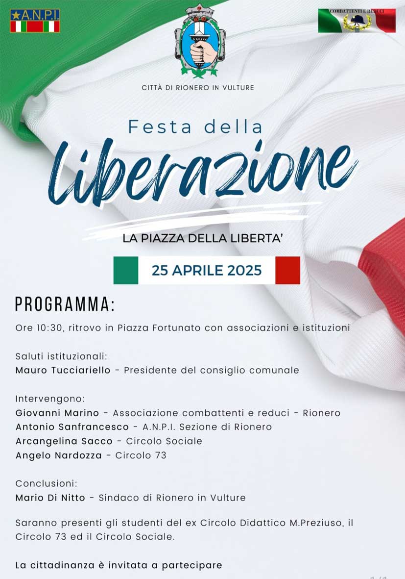 Rionero in Vulture celebra la Festa della Liberazione – 25 Aprile 2025